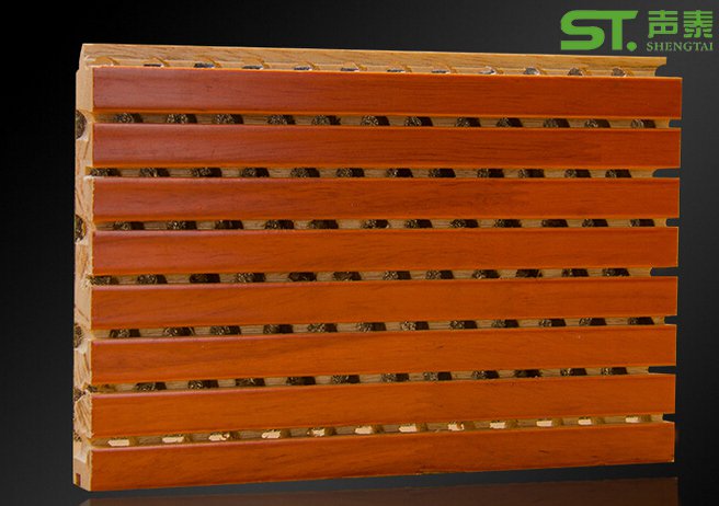1.槽木吸音板是一種在密度板的中纖板正面開槽、背面穿孔的狹縫共振吸聲材料。