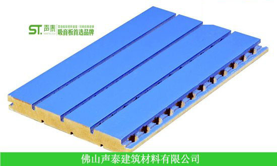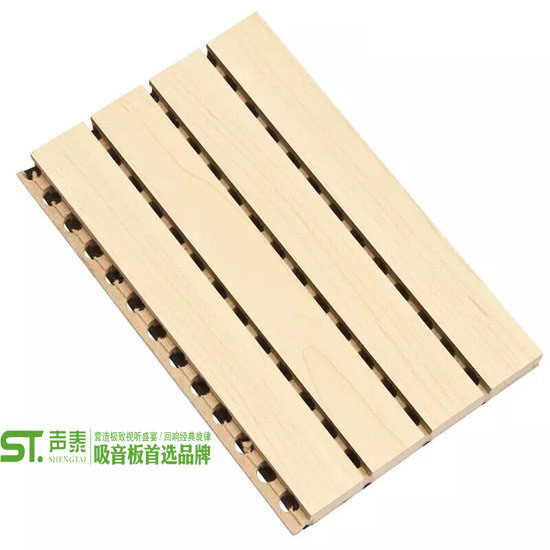 聲泰聲學(xué)槽木吸音板是一種在密度板正面開槽,背面穿孔的狹縫共振吸聲材料。槽木吸音板對吸聲頻譜選擇性很強(qiáng),對中低頻有很好的吸聲性能。如在吸聲結(jié)構(gòu)后空腔上填入適量的吸聲棉可提高中、高頻吸聲效果。