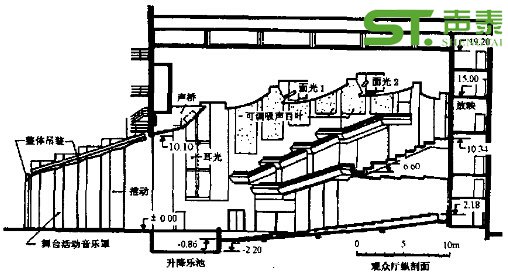 體形設(shè)計:對自然聲演出的歌劇院(或音樂廳)來說,體形設(shè)計至關(guān)重要,它要解決響度(音量)、聲強分布、聲擴散、早期反射聲的分布和消除音質(zhì)缺陷等問題。同時,體形設(shè)計也是最能反映如何繼承傳統(tǒng)歌劇院的良好品質(zhì)并加以發(fā)展的問題。