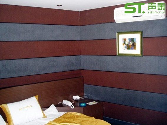 聚酯纖維吸音板是聚酯纖維材料成產而成,纖維吸音板具有重量輕、裝飾效果好、吸音性能好的特點。聚酯纖維吸音板吸音體除能吸收系數高較高的聲音之外也還具有聲音寬頻率即優異的聲學性能。聚酯纖維吸音板和其他多孔吸音材料的吸音原理相似;吸音系數隨聲音頻率的提高而增加,吸音板的后背留空腔以及用它構成的吸音體可大大提高材料的吸音效果,吸音降噪系數在0.8~1.10左右,成為寬頻帶的優異的吸音材料。