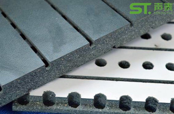 陶鋁吸音裝飾板材料本身內形成多孔結構,其二是在成品板上通過開糟鉆孔形成穿孔板,來達到吸聲效果。