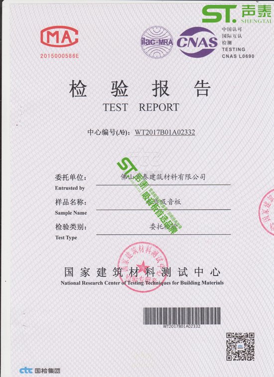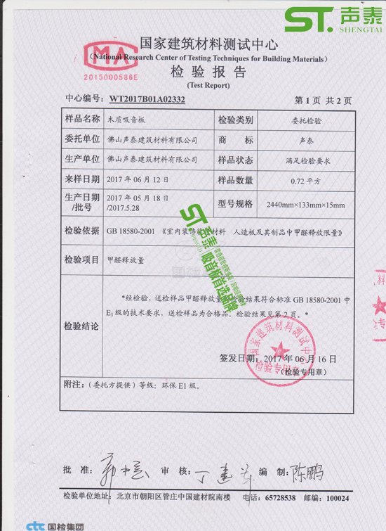 佛山聲泰木質環保吸音板檢測報告